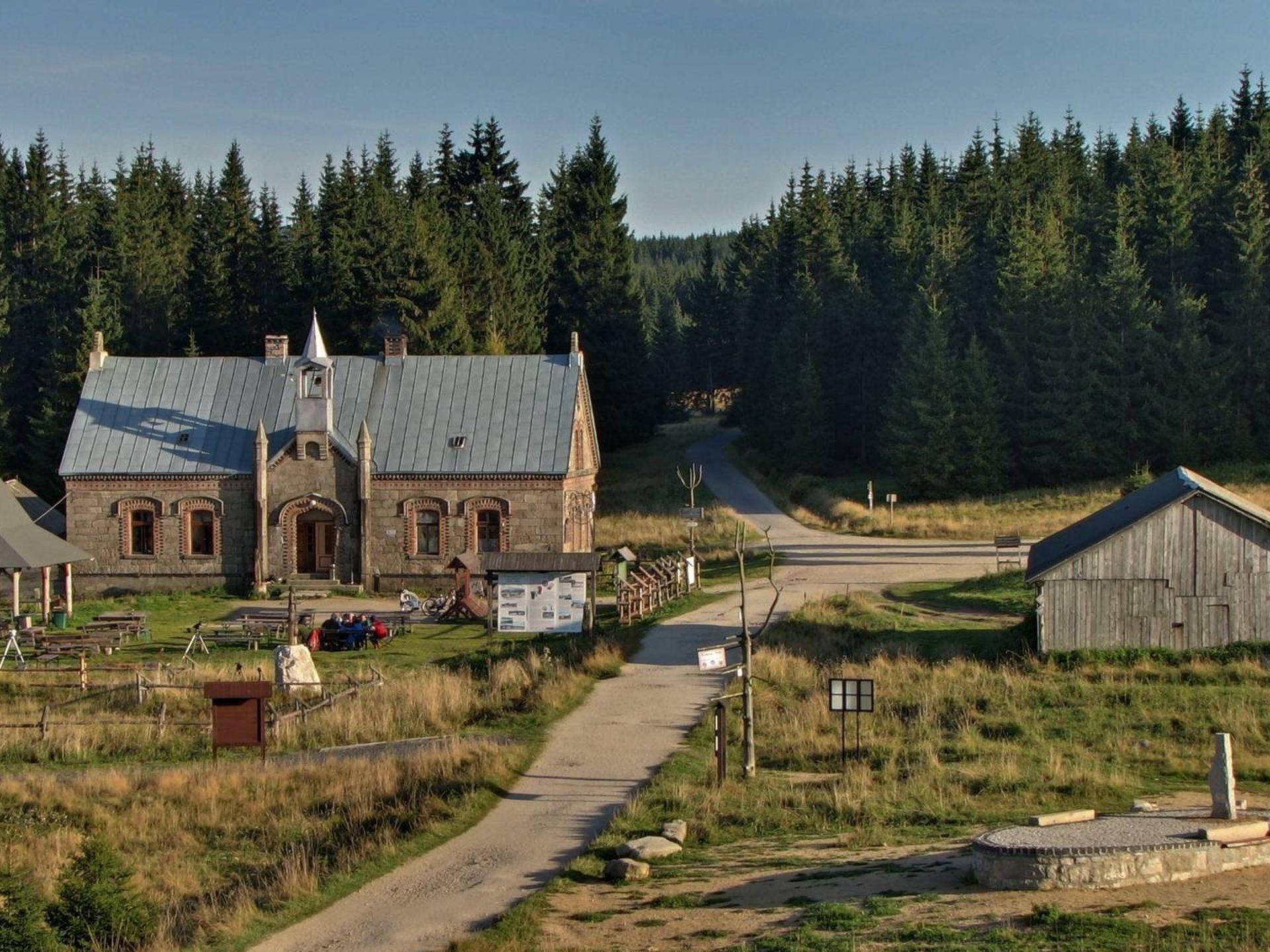 Przejść przez Jizerkę czerwonym 🔴 (CZ) i po 20 minutach skręcić w lewo pod Bukowcem. Po 15 minutach dojdziemy do U Barlochu (CZ).